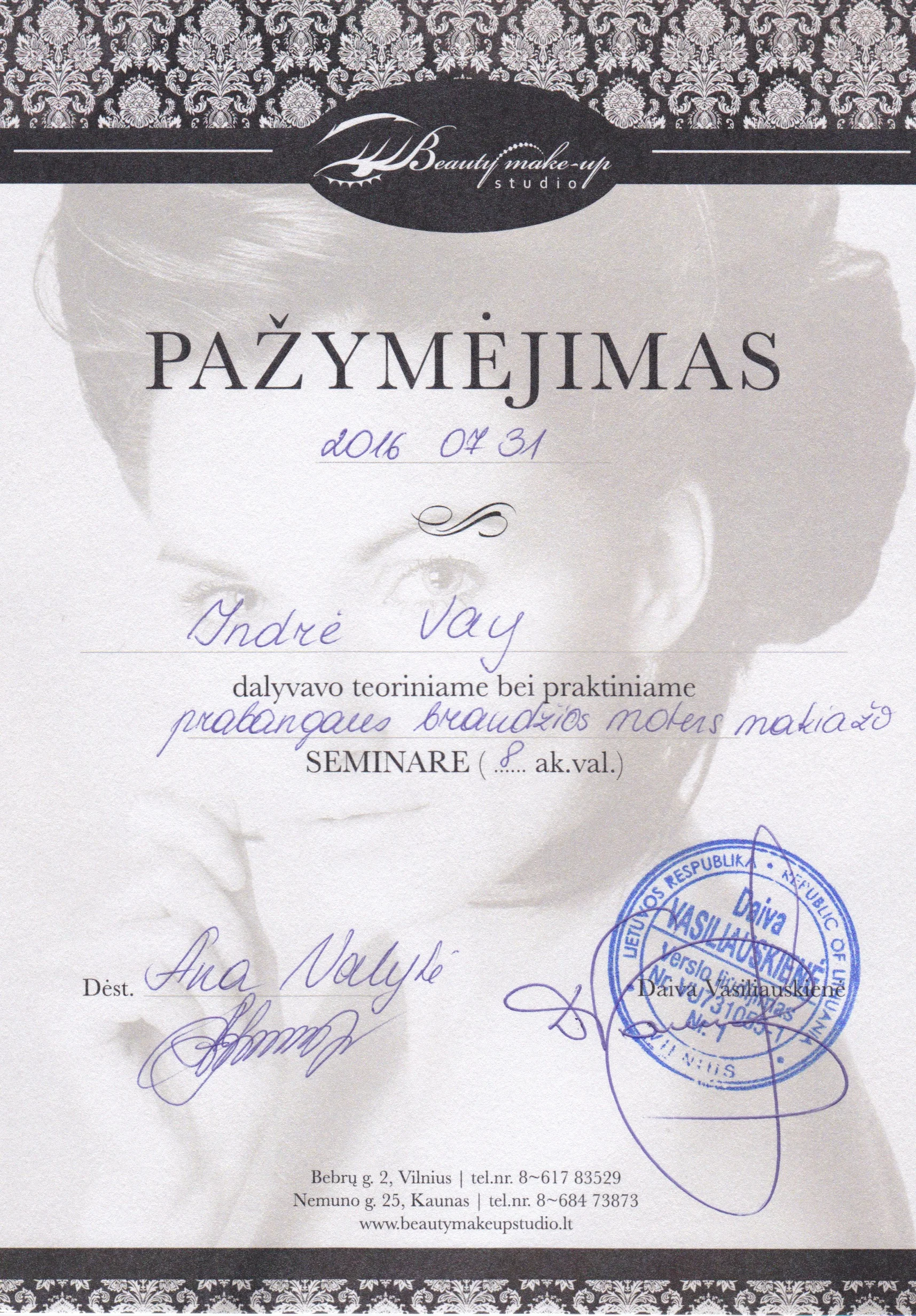 Esu profesionali, laisvai samdoma diplomuota vizažo specialistė. Pirmąją makiažo mokyklą baigiau Taline, nuo to tada nuolat tobulinu savo kvalifikaciją, dalyvaudama įvairiuose mokymuose bei seminaruose.